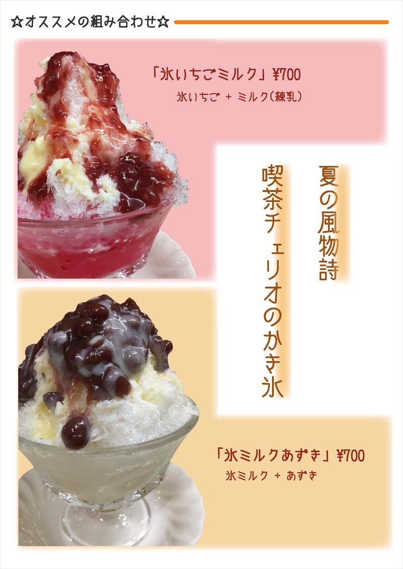 2016年5月24日 / 最終更新日時 : 2017年6月19日 cheerio おすすめ商品のご案内 【富山のかき氷】喫茶チェリオ かき氷の販売開始しました♪ 夏のような暑さになってきましたね^^; というわけで、 喫茶チェリオのかき氷の販売を早くも開始致します。 今年の暑いシーズンにはチェリオのかき氷! ぜひともよろしくお願い致します^^